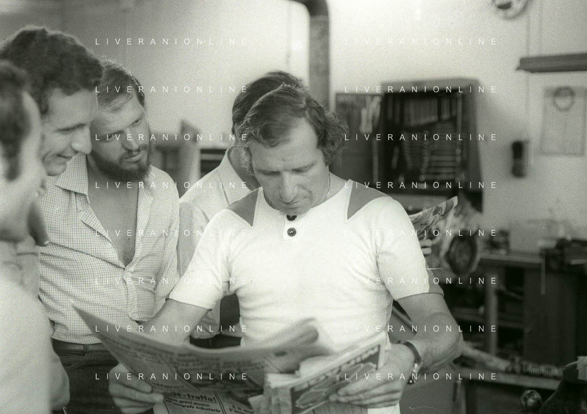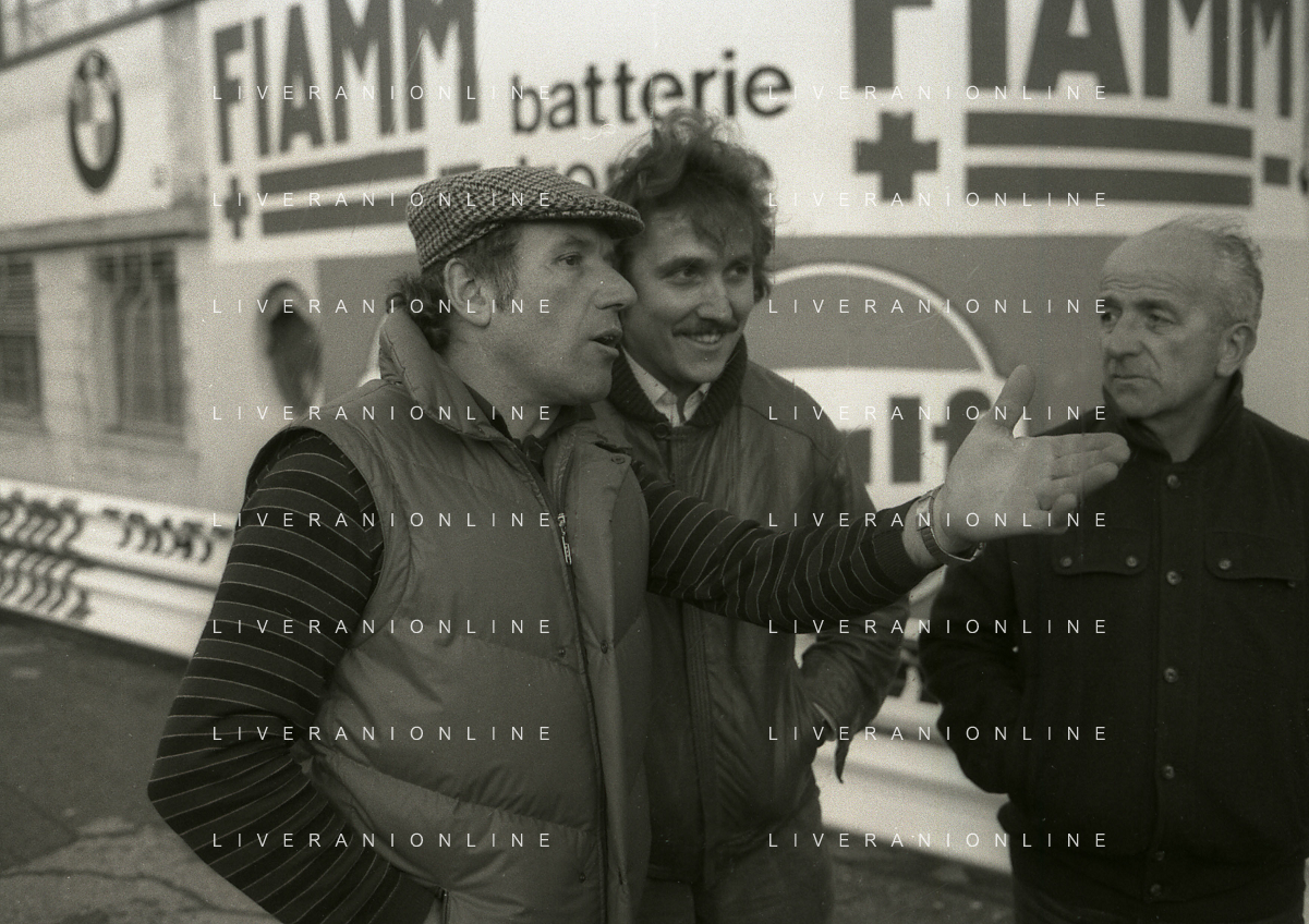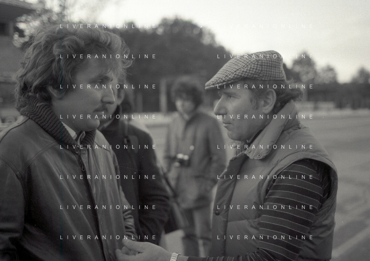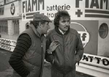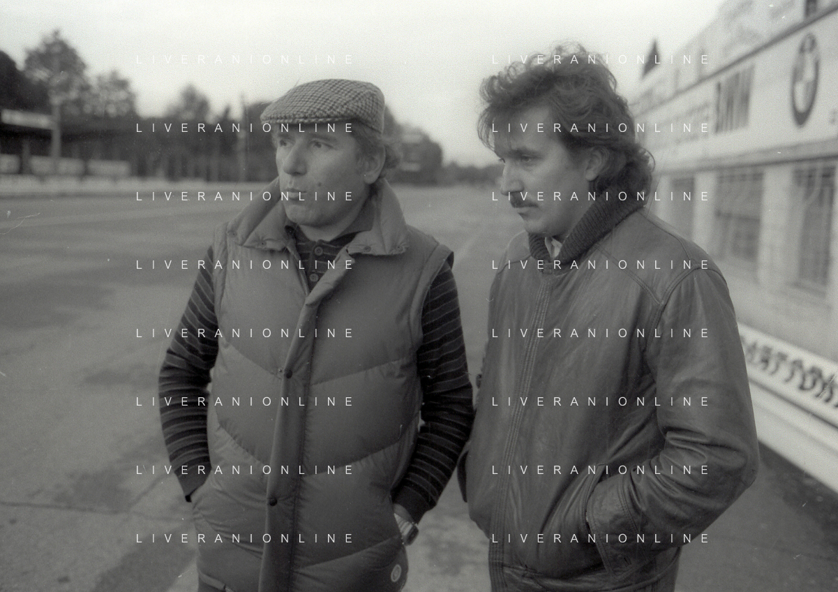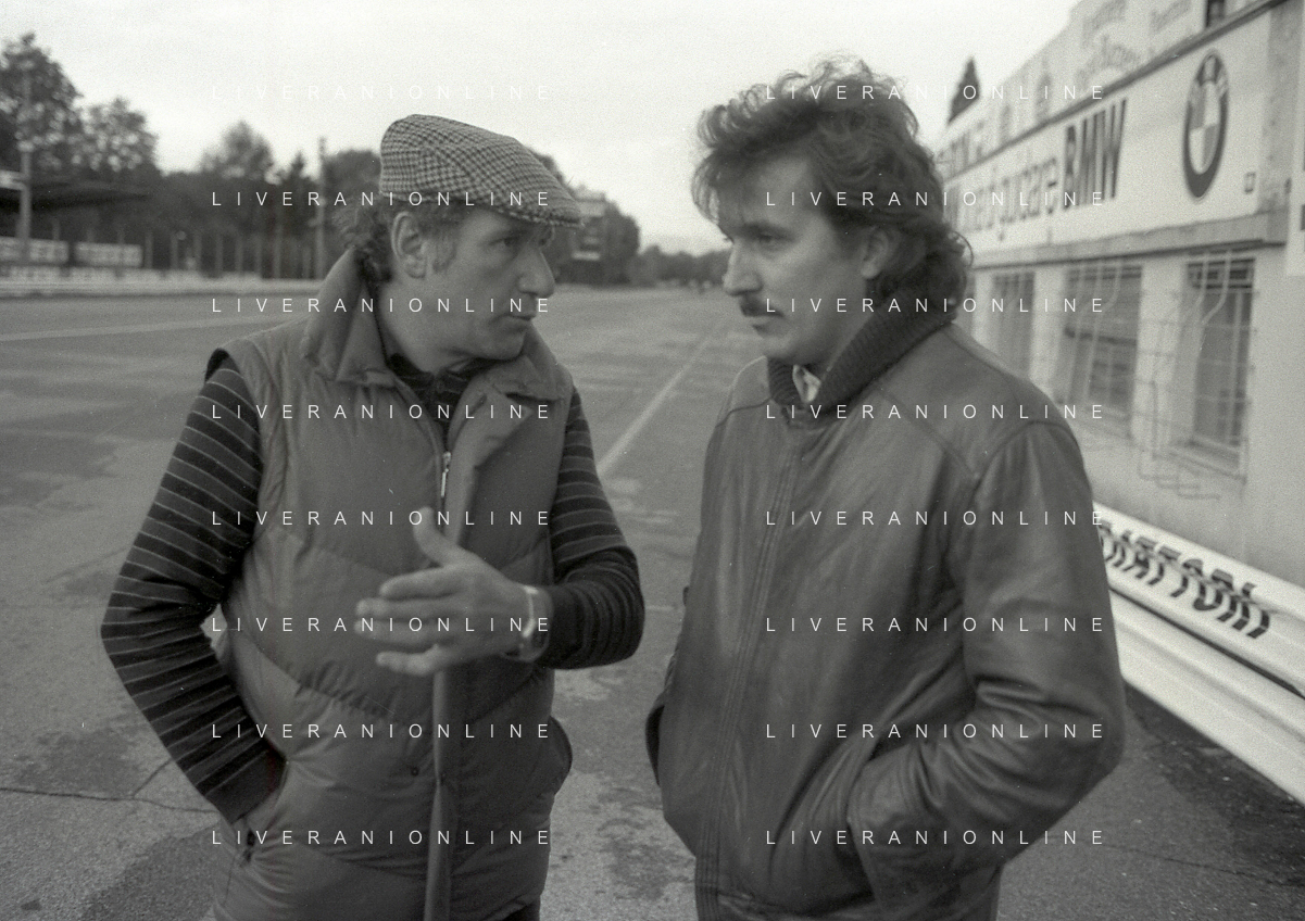RETROSPETTIVA VITTORIO BRAMBILLA PILOTA NELLA FOTO VITTORIO BRAMBILLA NELL'ANNO 1982 A MONZA CON NANDO CAZZANIGA AG ALDO LIVERANI SAS