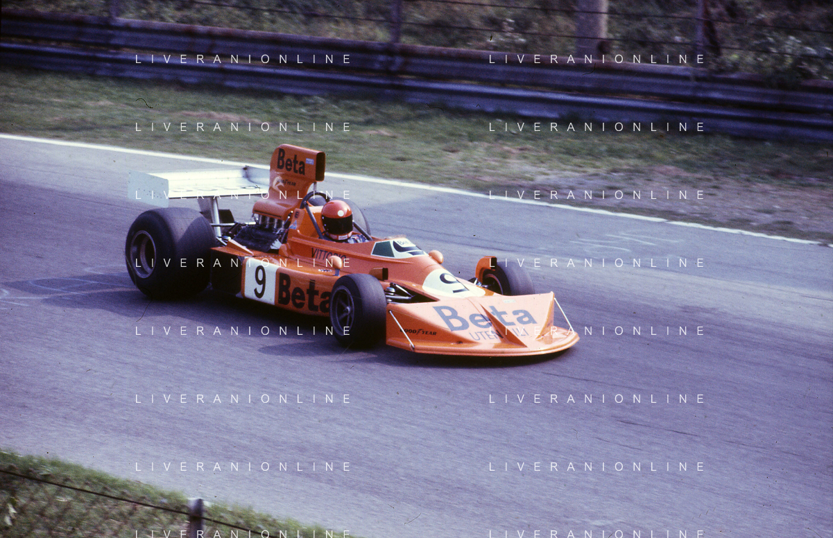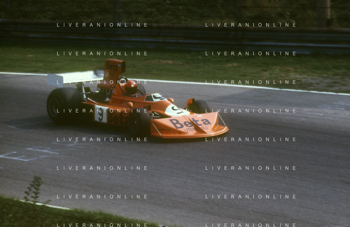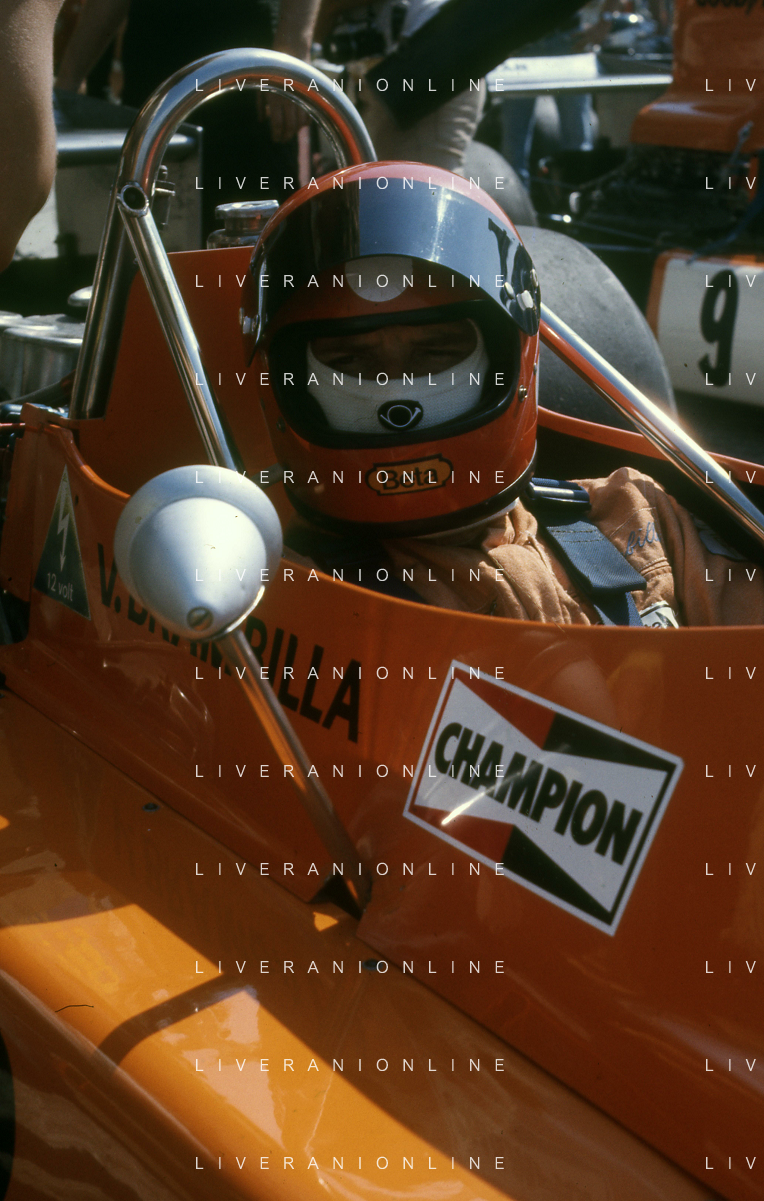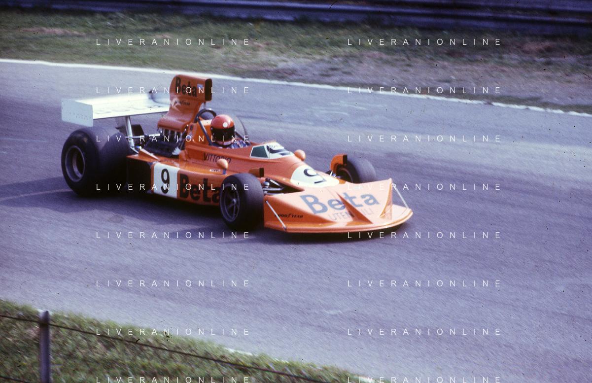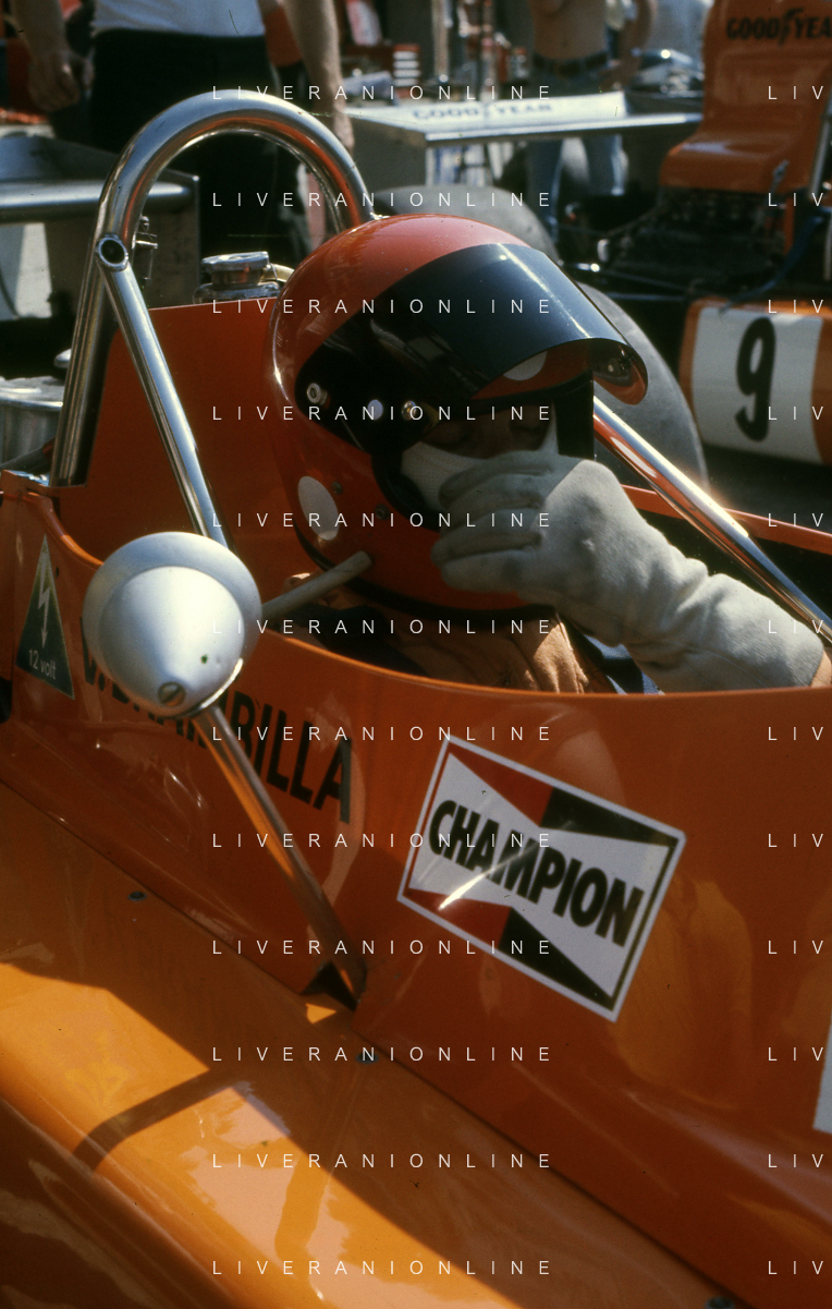 RETROSPETTIVA VITTORIO BRAMBILLA PILOTA NELLA FOTO VITTORIO BRAMBILLA NELL'ANNO 1974 A MONZA AG ALDO LIVERANI SAS