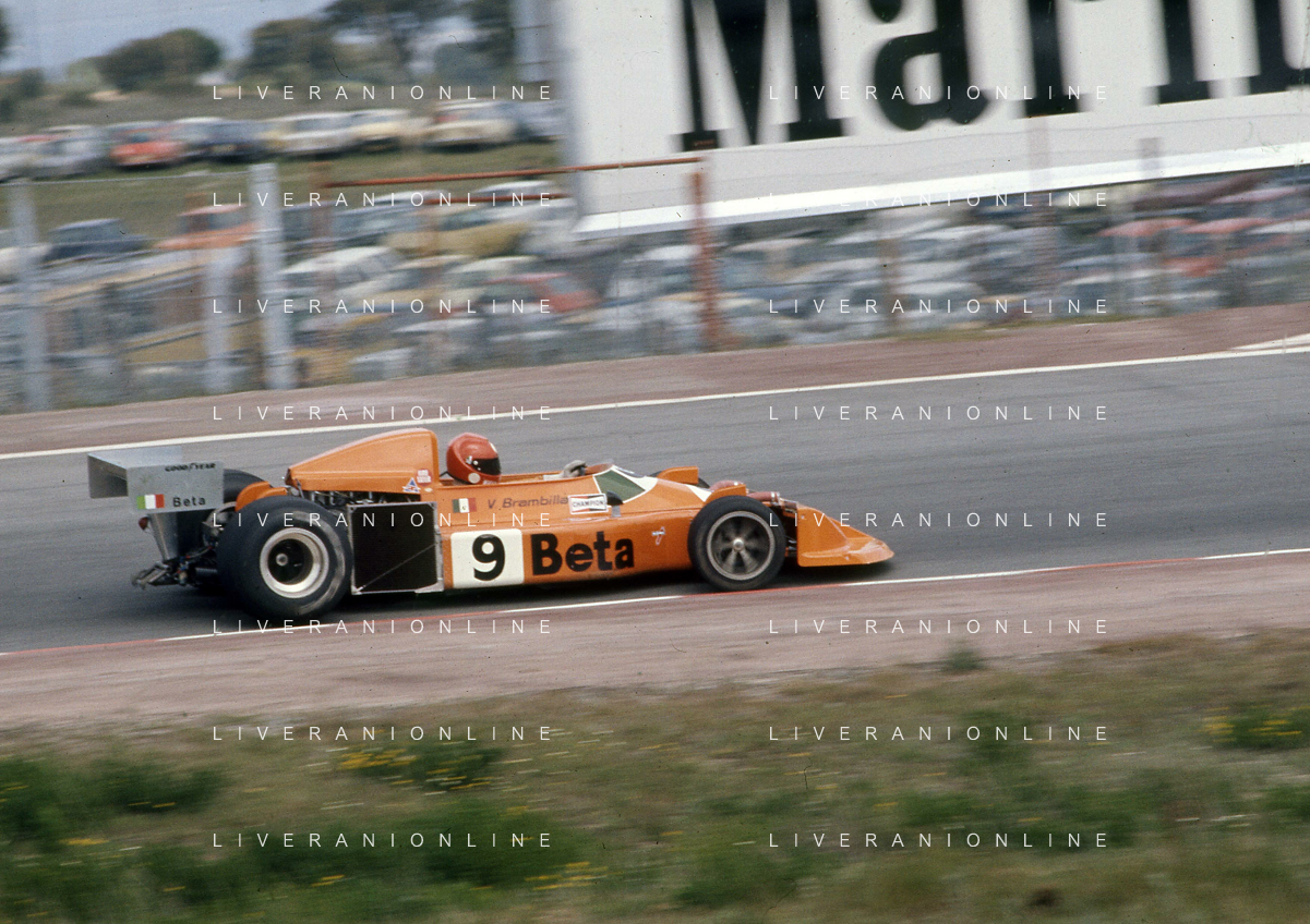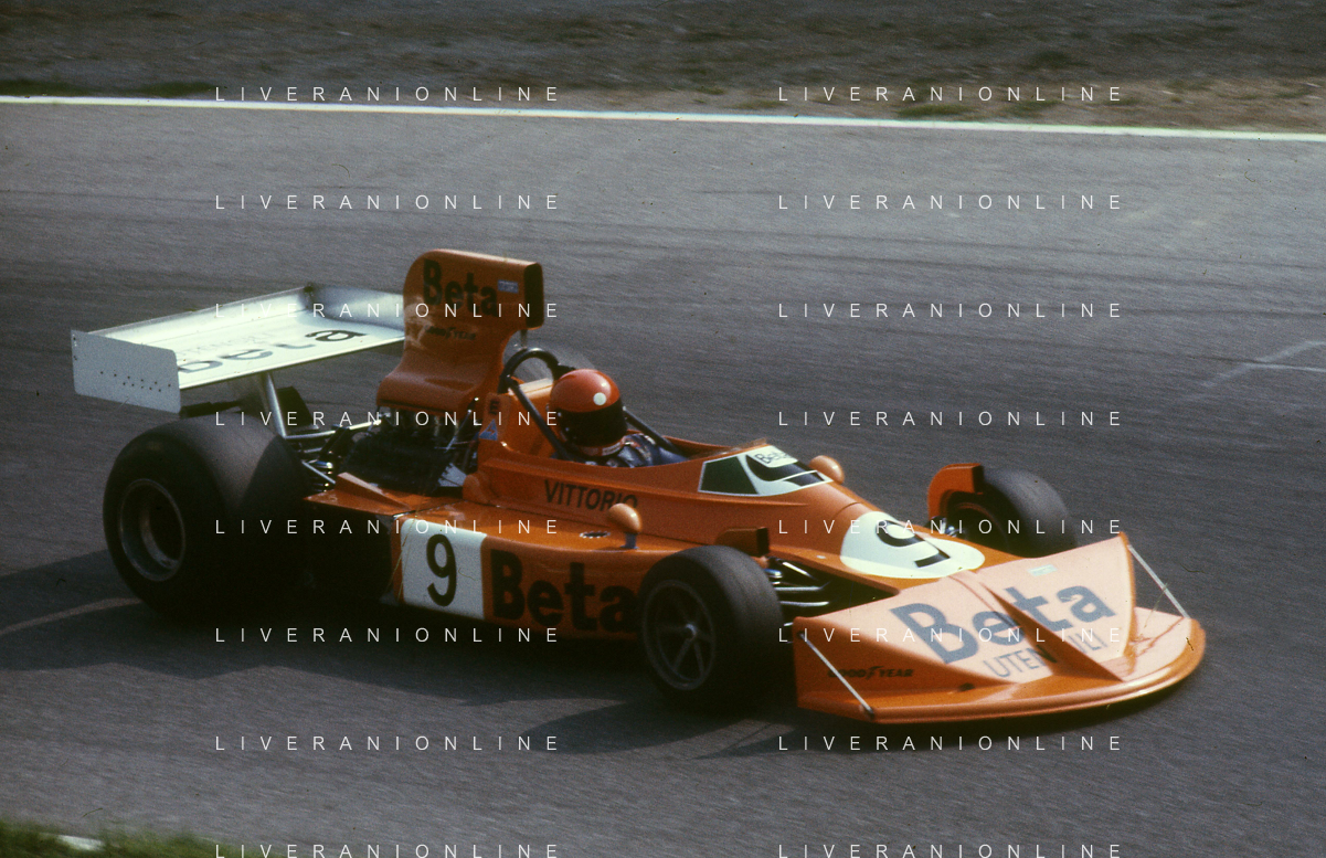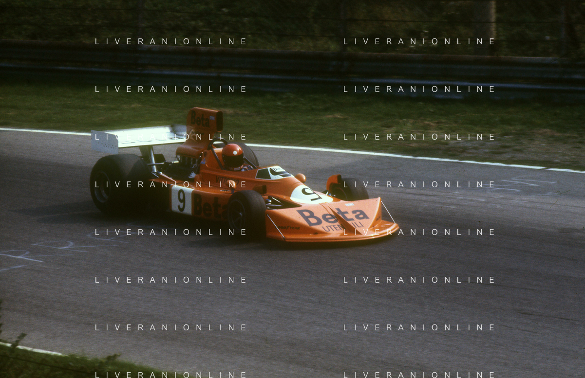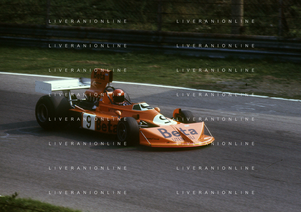 RETROSPETTIVA VITTORIO BRAMBILLA PILOTA NELLA FOTO VITTORIO BRAMBILLA NELL'ANNO 1974 A MONZA AG ALDO LIVERANI SAS