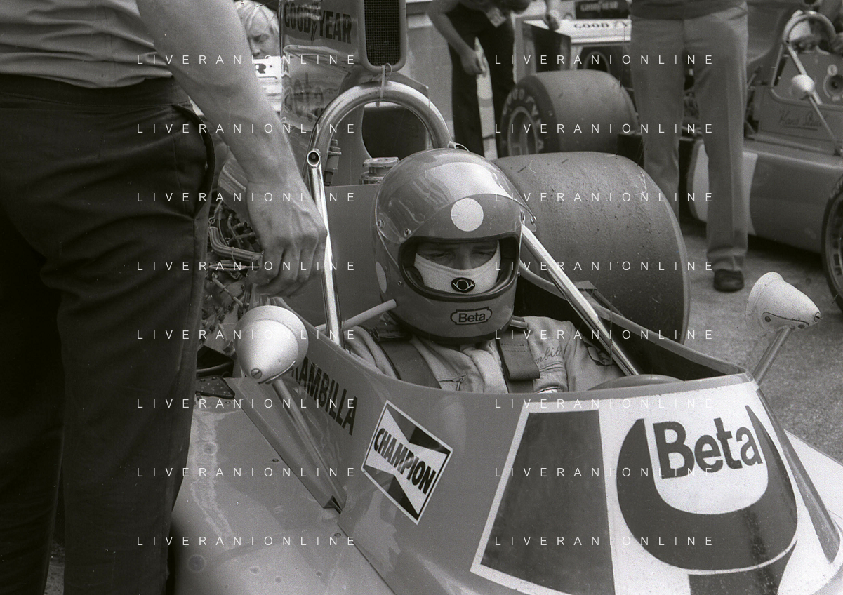 RETROSPETTIVA VITTORIO BRAMBILLA PILOTA NELLA FOTO VITTORIO BRAMBILLA NELL'ANNO 1975 AG ALDO LIVERANI SAS