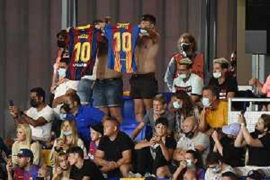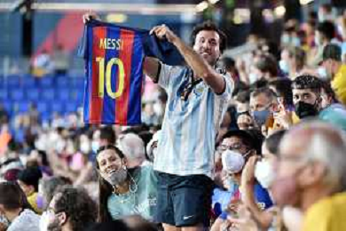 tifosi con la maglia di Leo Messi Barcellona vs Juventus - Trofeo Gamper amichevole precampionato Barcellona (SPA) 08-08-2021 Stadio Johan Cruijff foto Roberto Garavaglia/ag. Aldo Liverani sas/AGENZIA ALDO LIVERANI SAS