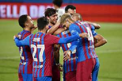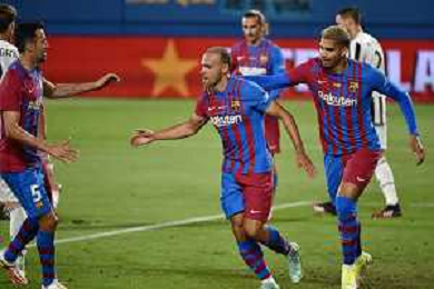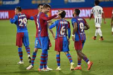 esultanza Barcellona dopo il gol del 3 a 0 Barcellona vs Juventus - Trofeo Gamper amichevole precampionato Barcellona (SPA) 08-08-2021 Stadio Johan Cruijff foto Roberto Garavaglia/ag. Aldo Liverani sas/AGENZIA ALDO LIVERANI SAS