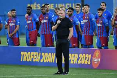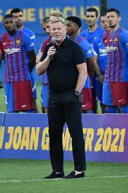 Ronald Koman allenatore del Barcellona ha salutato Lionel Messi durante la presentazione della squadra Barcellona vs Juventus - Trofeo Gamper amichevole precampionato Barcellona (SPA) 08-08-2021 Stadio Johan Cruijff foto Roberto Garavaglia/ag. Aldo Liverani sas