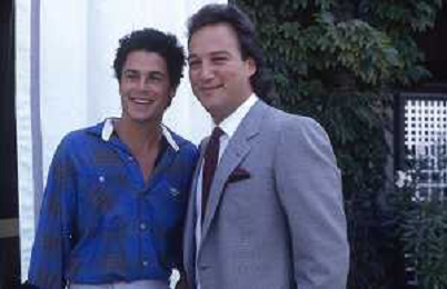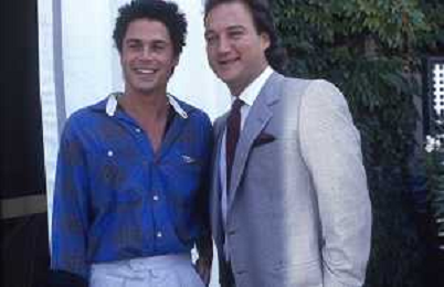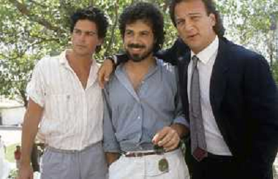 RETROSPETTIVA JIM BELUSHI ATTORE NELLA FOTO JIM BELUSHI A VENEZIA NELL'ANNO 1986 CON EDUARD ZWICK E ROB LOWE AG ALDO LIVERANI SAS