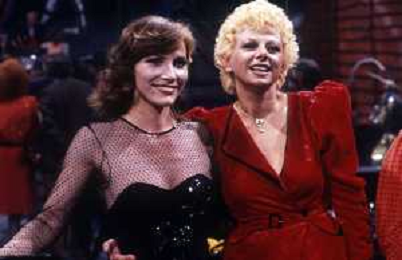 RETROSPETTIVA IVANA MONTI ATTRICE NELLA FOTO IVANA MONTI NELLA TRASMISSIONE TELEVISIVA “BLITZ“ CON SANDRA MILO NELL'ANNO 1980 AG ALDO LIVERANI SAS