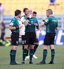 PARMA - LECCE TRENTADUESIMI COPPA ITALIA 15.08.2021 NELLA FOTO L'ARBITRO MARCO SERRA DURANTE IL COOLING BREAK CON I SUOI ASSISTENTI ©SANTANDREA/AGENZIA ALDO LIVERANI SASAS
