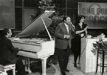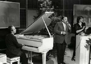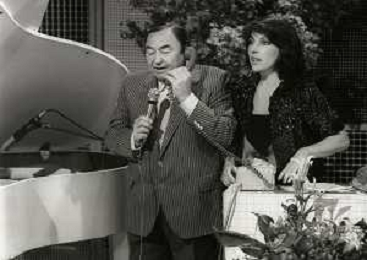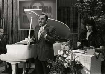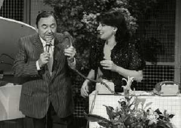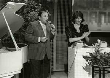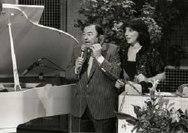 RETROSPETTIVA GIORGIO CONSOLINI CANTANTE NELLA FOTO GIORGIO CONSOLINI IN RAI CON CARLA URBAN NELL'ANNO 1984 AG ALDO LIVERANI SAS
