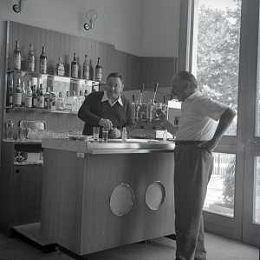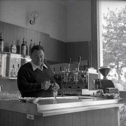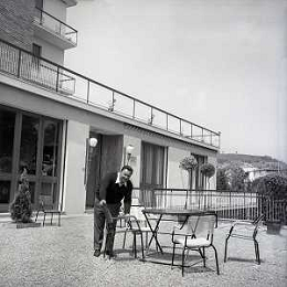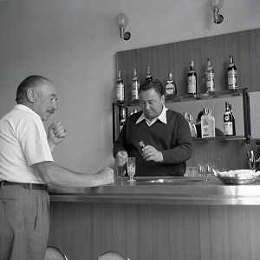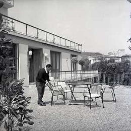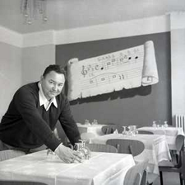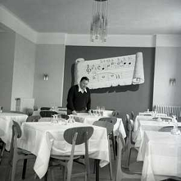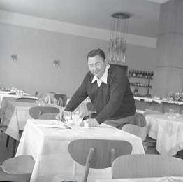 RETROSPETTIVA GIORGIO CONSOLINI CANTANTE NELLA FOTO GIORGIO CONSOLINI NEL SUO RISTORANTE A CASTROCARO 01-06-1964 AG ALDO LIVERANI SAS