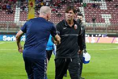 CerquigliniL/LMedia - AC Perugia vs Ascoli Calcio - Campionato di Calcio Serie BKT 2021/2022 28 agosto 2021 - Stadio Renato Curi, Perugia, Italia Nella foto: massimiliano alvini (allenatore perugia calcio) sottil andrea (allenatore ascoli calcio) si salutano prepartita @CerquigliniL/LMedia AG ALDO LIVERANI SAS