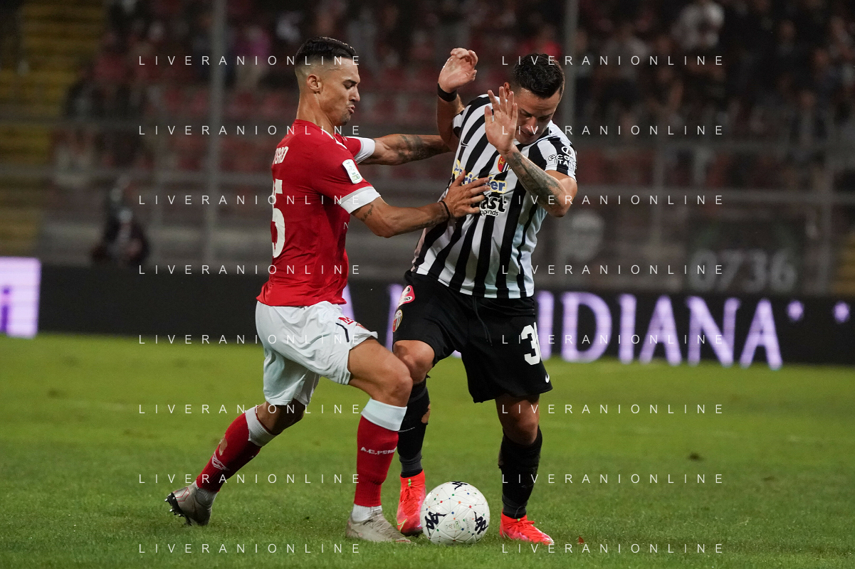 CerquigliniL/LMedia - AC Perugia vs Ascoli Calcio - Campionato di Calcio Serie BKT 2021/2022 28 agosto 2021 - Stadio Renato Curi, Perugia, Italia Nella foto: saric dario (n.30 ascoli calcio) vs santoro simone (n.25 perugia calcio) @CerquigliniL/LMedia