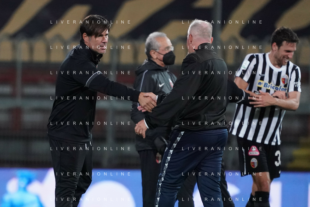 CerquigliniL/LMedia - AC Perugia vs Ascoli Calcio - Campionato di Calcio Serie BKT 2021/2022 28 agosto 2021 - Stadio Renato Curi, Perugia, Italia Nella foto: sottil andrea (allenatore ascoli calcio) massimiliano alvini (allenatore perugia calcio) si salutano a fine gara @CerquigliniL/LMedia AG ALDO LIVERANI SAS