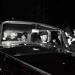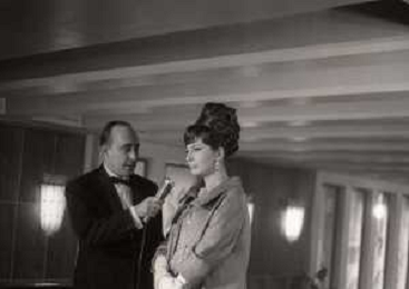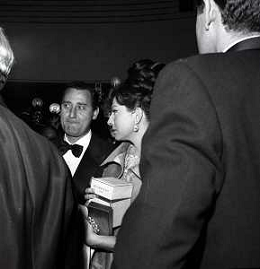 RETROSPETTIVA SORAYA ESFANDIARY BAKHTIARI REGINA DI PERSIA NELLA FOTO SORAYA ESFANDIARY BAKHTIARI PRINCIPESSA DI PERSIA ALLA PRIMA DEL SUO FILM A MILANO IL GIORNO 12-01-1965 CON LELLO BERSANI AG ALDO LIVERANI SAS