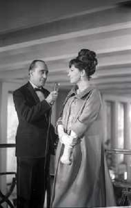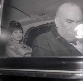 RETROSPETTIVA SORAYA ESFANDIARY BAKHTIARI REGINA DI PERSIA NELLA FOTO SORAYA ESFANDIARY BAKHTIARI PRINCIPESSA DI PERSIA ALLA PRIMA DEL SUO FILM A MILANO IL GIORNO 12-01-1965 CON ALBERTO SORDI AG ALDO LIVERANI SAS