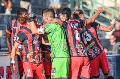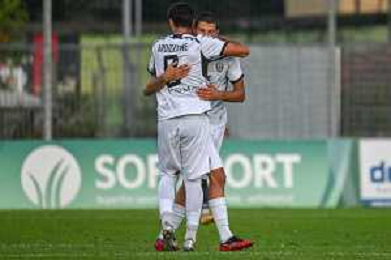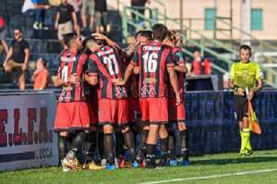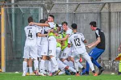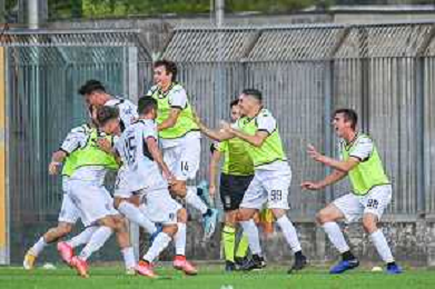 FagioliniF/LMedia - Lucchese vs Cesena - Campionato di Calcio Serie C - Lega Pro 2021/2022 05 settembre 2021 - Stadio Porta Elisa, Lucca, Italia Nella foto: Esultanza Lucchese dopo il gol di Francesco Corsinelli (Lucchese @FagioliniF/LMedia/AGENZIA ALDO LIVERANI SAS