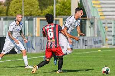 FagioliniF/LMedia - Lucchese vs Cesena - Campionato di Calcio Serie C - Lega Pro 2021/2022 05 settembre 2021 - Stadio Porta Elisa, Lucca, Italia Nella foto: Eklu Shaka Mawuli (Lucchese) fermato da Carlo Ilari (Cesena) @FagioliniF/LMedia/AGENZIA ALDO LIVERANI SAS