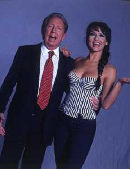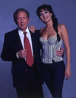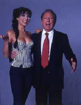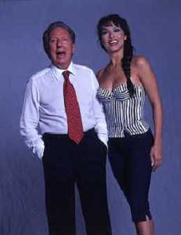 RETROSPETTIVA MIKE BONGIORNO PRESENTATORE TELEVISIVO NELLA FOTO MIKE BONGIORNO CON LA VALLETTA MIRIANA TREVISAN AG ALDO LIVERANI SAS