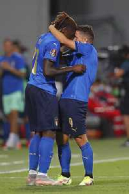 ITALIA vs LITUANIA Qualificazioni Europee del gruppo C ai Mondiali del Qatar 2022 del 08/09/2021 - nella foto: esultanza Kean Moise(Italia)- Raspadori Giacomo(Italia)-dopo il goal ©Claudio Zamagni/Agenzia Aldo Liverani s.a.s. during European Qualifying Round of FIFA World Championship of Qatar 2022 between Italy and Lituania at Mapei Stadium on september 08 2021 in Reggio Emilia photo credit by Claudio Zamagni/Aldo Liverani Photo Agency/AGENZIA ALDO LIVERANI SAS