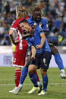 ITALIA vs LITUANIA Qualificazioni Europee del gruppo C ai Mondiali del Qatar 2022 del 08/09/2021 - nella foto: Acerbi Francesco(Italia)- Bernardeschi Federico(Italia)Di Lorenzo Giovanni(Italia)-Donnarumma Gianluigi(Italia) ©Claudio Zamagni/Agenzia Aldo Liverani s.a.s. Acerbi Francesco(Italia)- Bernardeschi Federico(Italia)Di Lorenzo Giovanni(Italia)-Donnarumma Gianluigi(Italia) during European Qualifying Round of FIFA World Championship of Qatar 2022 between Italy and Lituania at Mapei Stadium on september 08 2021 in Reggio Emilia photo credit by Claudio Zamagni/Aldo Liverani Photo Agency/AGENZIA ALDO LIVERANI SAS