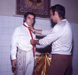 RETROSPETTIVA MINO REITANO CANTANTE NELLA FOTO MINO REITANO A MADRID PR LA CORRIDA CON DOMINGUIN IL GIORNO 27-06-1971 AG ALDO LIVERANI SAS