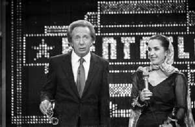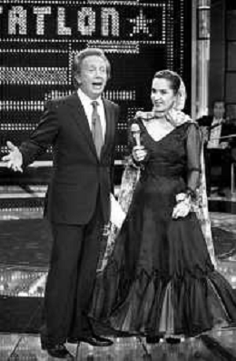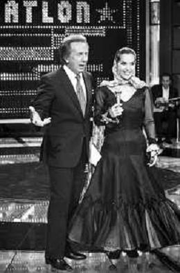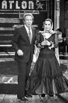 PENTATLON gioco televisivo a premi, trasmesso su Canale 5 nel 1986, condotto da Mike Bongiorno Nella foto con la Ballerina Spagnola Maria Rosa ©Archivio Giovanni Liverani / AGENZIA ALDO LIVERANI SAS