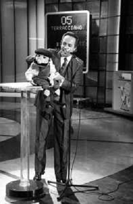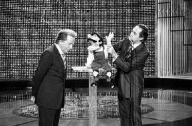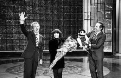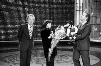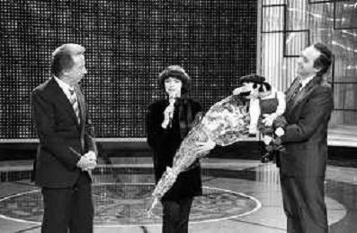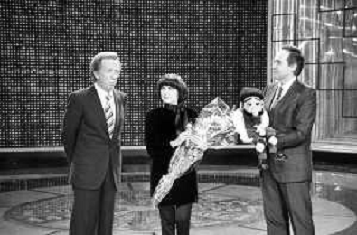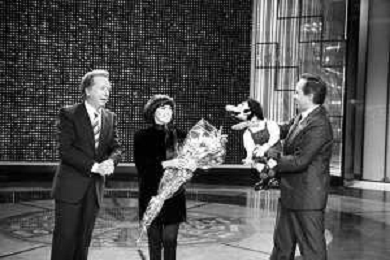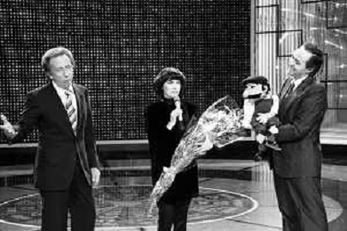 Mireille MathieuPENTATLON gioco televisivo a premi, trasmesso su Canale 5 nel 1986, condotto da Mike Bongiorno Nella foto con il ventriloquo jose' luis moreno con il pupazzo macario e la cantante francese Mireille Mathieu ©Archivio Giovanni Liverani / AGENZIA ALDO LIVERANI SAS