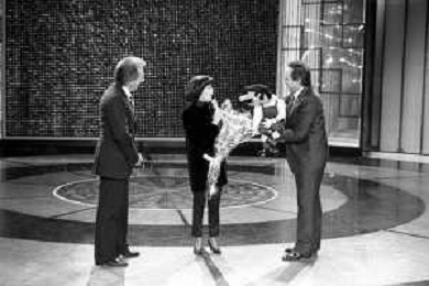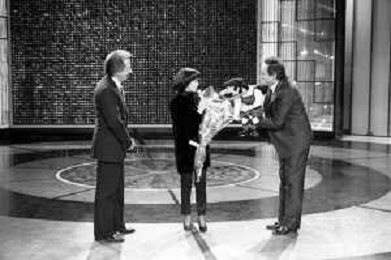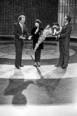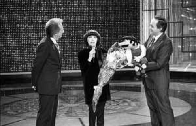 PENTATLON gioco televisivo a premi, trasmesso su Canale 5 nel 1986, condotto da Mike Bongiorno Nella foto con la cantante francese Mireille Mathieu ©Archivio Giovanni Liverani / AGENZIA ALDO LIVERANI SAS