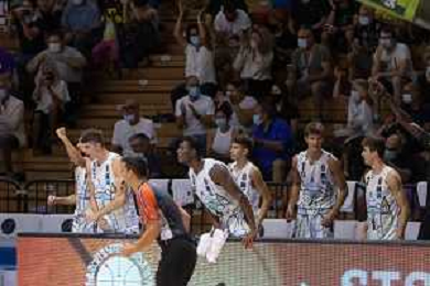 CasoniM/LMedia - Vanoli Basket Cremona VS Banco di Sardegna Sassari - Basket Supercoppa Italiana 10 settembre 2021 - Pala Radi, Cremona, Italia Nella foto: la panchina Vanoli Cremona esulta dopo un canestro @CasoniM/LMedia/ AGENZIA ALDO LIVERANI SAS