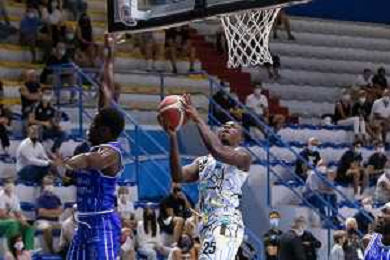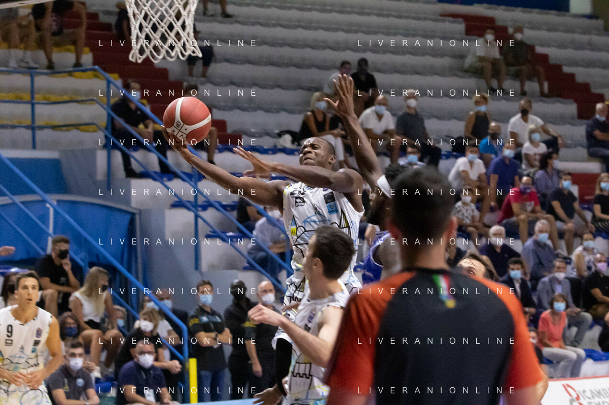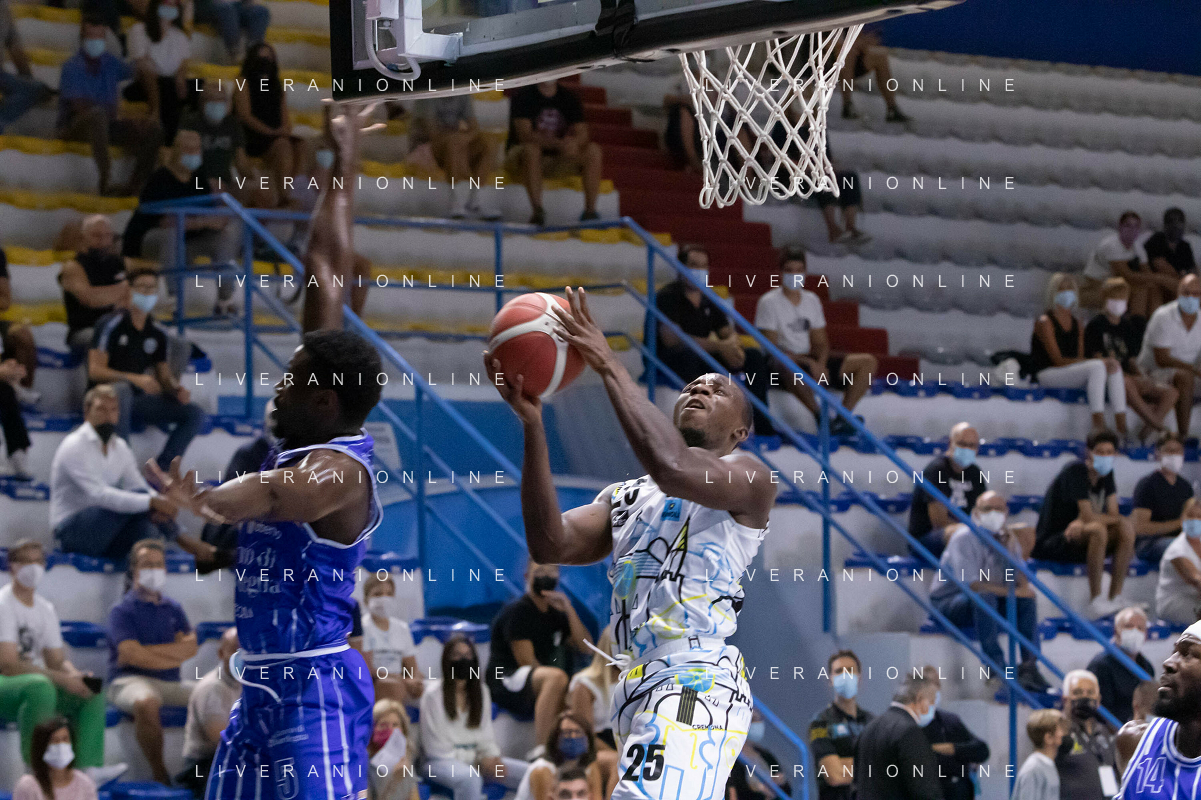 CasoniM/LMedia - Vanoli Basket Cremona VS Banco di Sardegna Sassari - Basket Supercoppa Italiana 10 settembre 2021 - Pala Radi, Cremona, Italia Nella foto: AGBAMU Destiny (Vanoli Cremona) appoggia al ferro @CasoniM/LMedia/ AGENZIA ALDO LIVERANI SAS