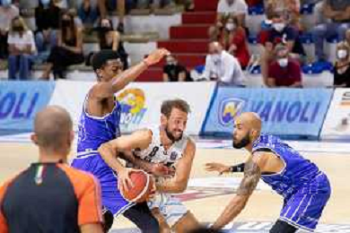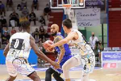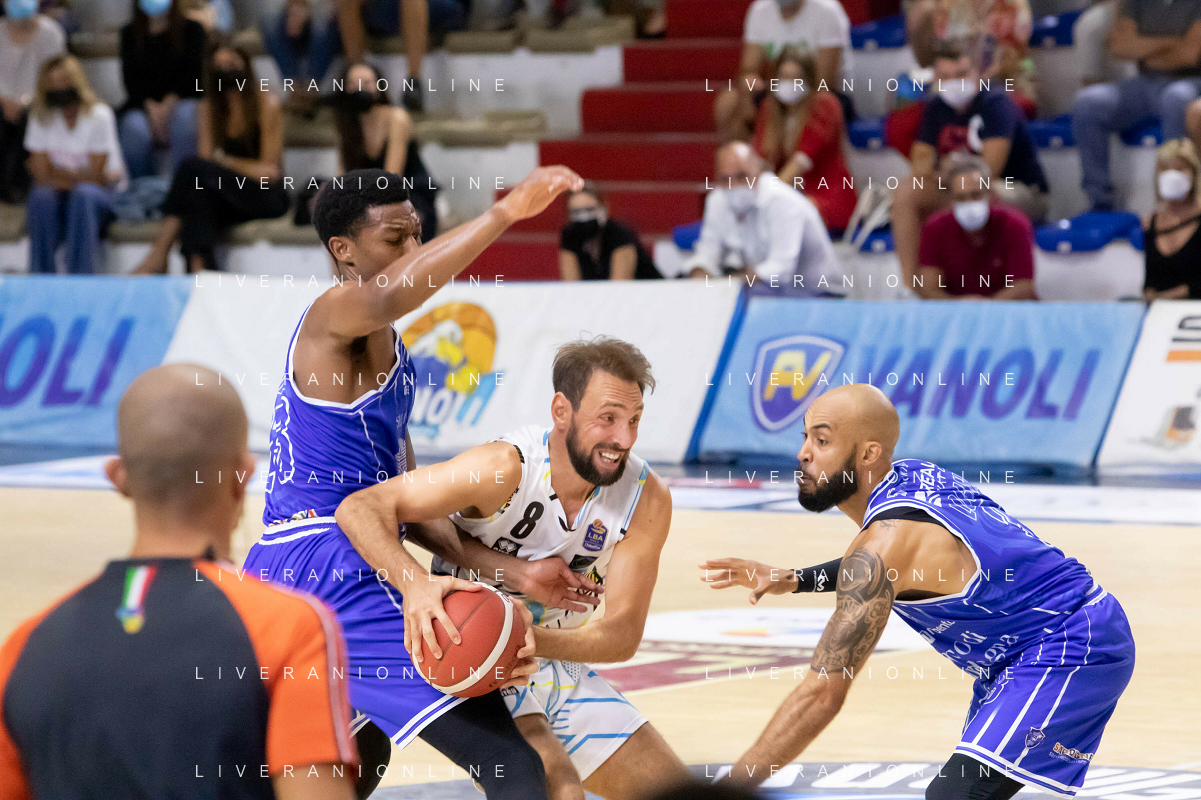 CasoniM/LMedia - Vanoli Basket Cremona VS Banco di Sardegna Sassari - Basket Supercoppa Italiana 10 settembre 2021 - Pala Radi, Cremona, Italia Nella foto: POETA Giuseppe (Vanoli Cremona) lotta tra due avversari @CasoniM/LMedia/ AGENZIA ALDO LIVERANI SAS