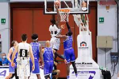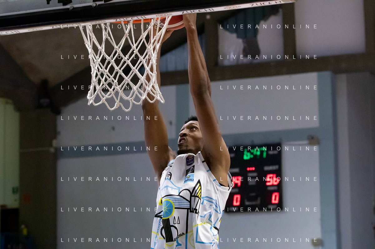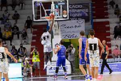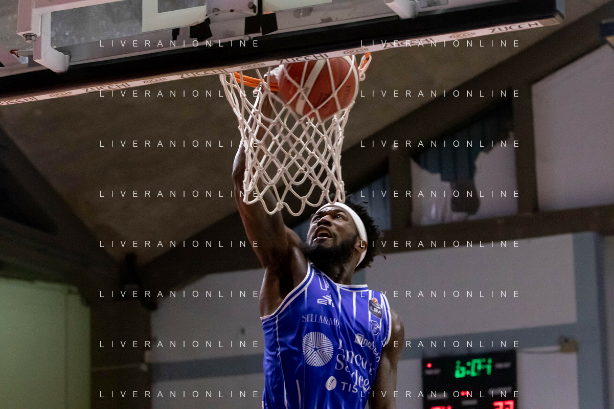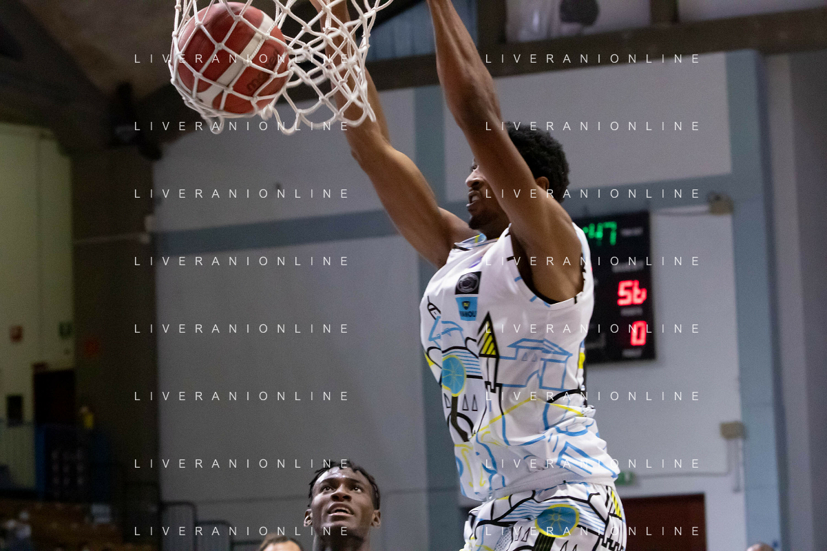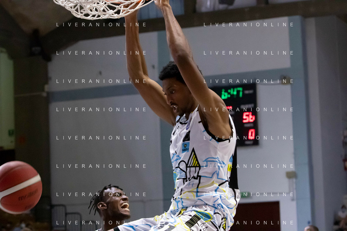 CasoniM/LMedia - Vanoli Basket Cremona VS Banco di Sardegna Sassari - Basket Supercoppa Italiana 10 settembre 2021 - Pala Radi, Cremona, Italia Nella foto: AGBAMU Destiny (Vanoli Cremona) tenta una schiacciata @CasoniM/LMedia/ AGENZIA ALDO LIVERANI SAS