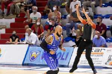 CasoniM/LMedia - Vanoli Basket Cremona VS Banco di Sardegna Sassari - Basket Supercoppa Italiana 10 settembre 2021 - Pala Radi, Cremona, Italia Nella foto: COURNOOH David (Vanoli Cremona) in entrata dopo un fallo @CasoniM/LMedia/ AGENZIA ALDO LIVERANI SAS
