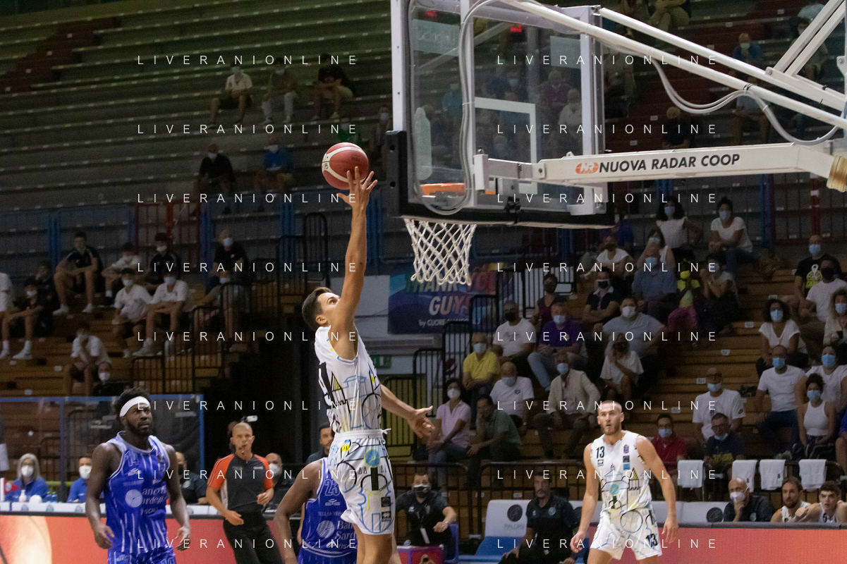 CasoniM/LMedia - Vanoli Basket Cremona VS Banco di Sardegna Sassari - Basket Supercoppa Italiana 10 settembre 2021 - Pala Radi, Cremona, Italia Nella foto: SPAGNOLO Matteo (Vanoli Cremona) appoggia al ferro @CasoniM/LMedia/ AGENZIA ALDO LIVERANI SAS