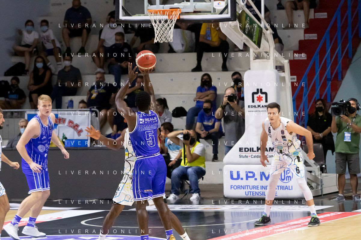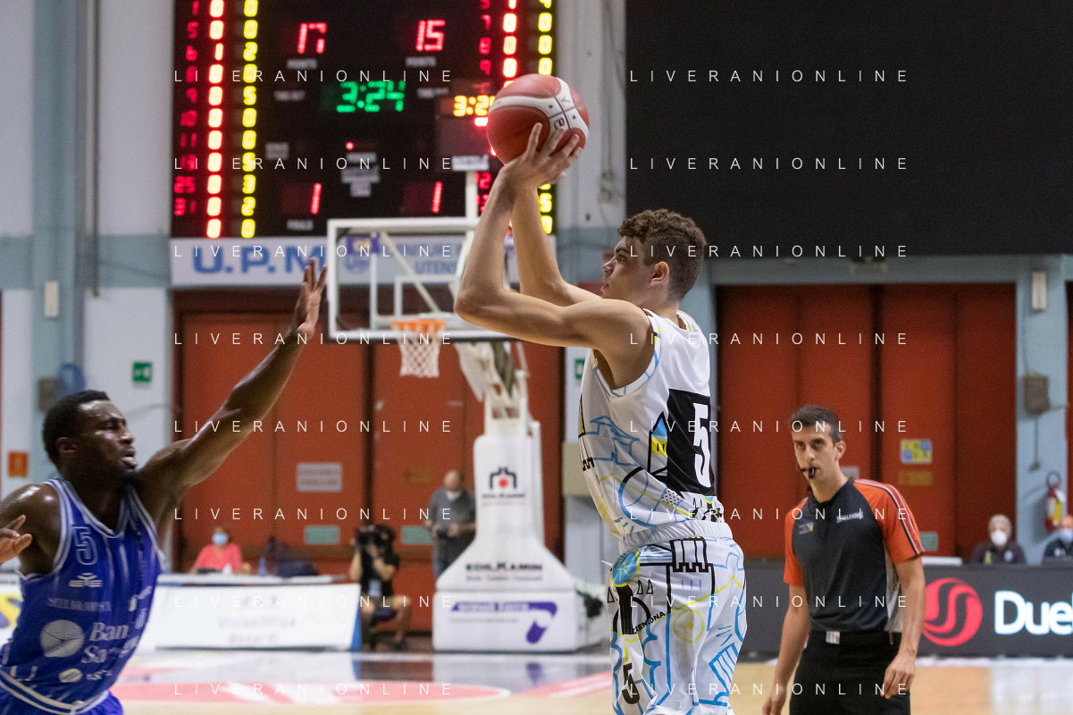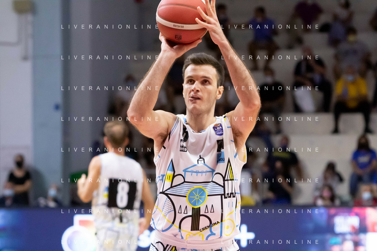 CasoniM/LMedia - Vanoli Basket Cremona VS Banco di Sardegna Sassari - Basket Supercoppa Italiana 10 settembre 2021 - Pala Radi, Cremona, Italia Nella foto: POETA Giuseppe (Vanoli Cremona) al tiro da tre punti @CasoniM/LMedia/ AGENZIA ALDO LIVERANI SAS