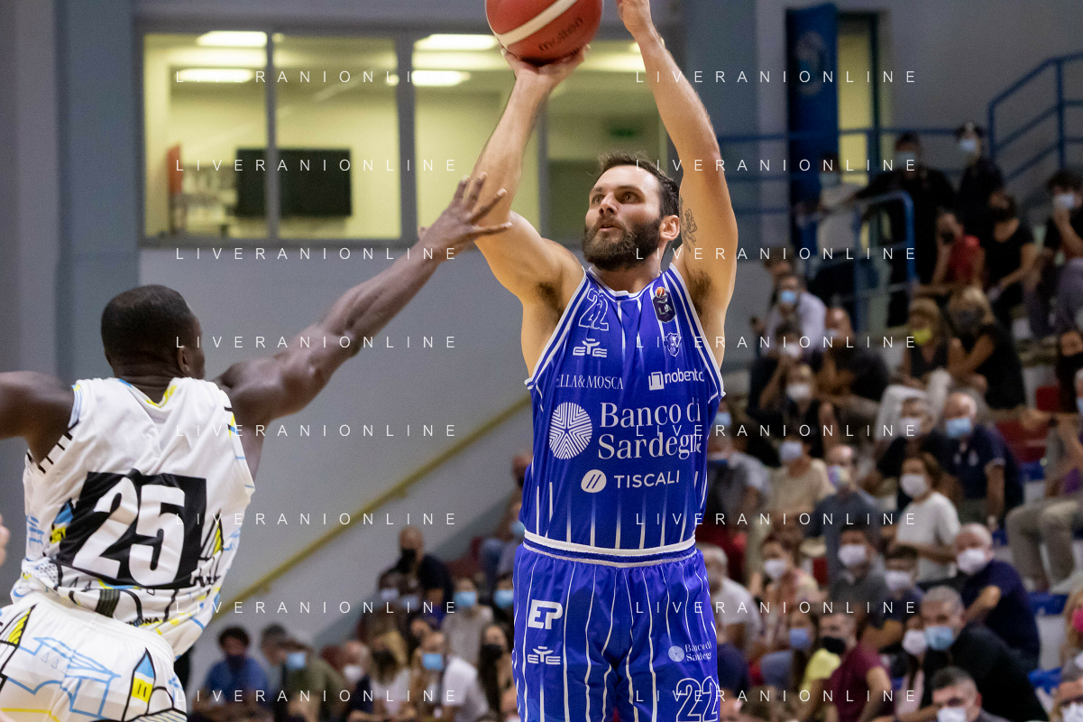 CasoniM/LMedia - Vanoli Basket Cremona VS Banco di Sardegna Sassari - Basket Supercoppa Italiana 10 settembre 2021 - Pala Radi, Cremona, Italia Nella foto: GENTILE Stefano (Banco di Sardegna Sassari) al tiro @CasoniM/LMedia/ AGENZIA ALDO LIVERANI SAS