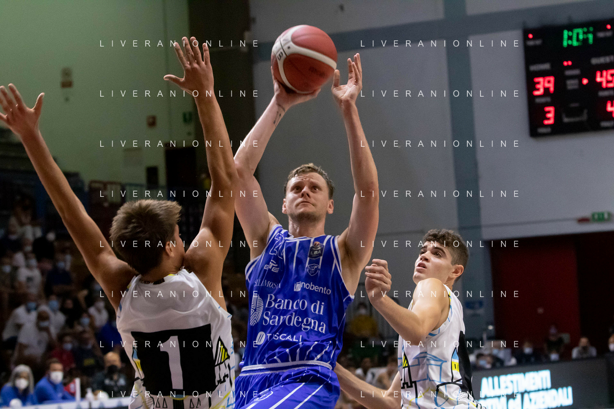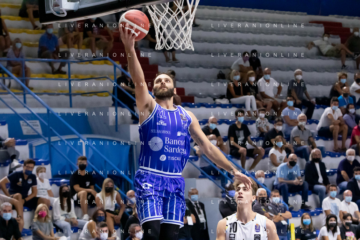 CasoniM/LMedia - Vanoli Basket Cremona VS Banco di Sardegna Sassari - Basket Supercoppa Italiana 10 settembre 2021 - Pala Radi, Cremona, Italia Nella foto: GENTILE Stefano (Banco di Sardegna Sassari) in appoggio @CasoniM/LMedia/ AGENZIA ALDO LIVERANI SAS