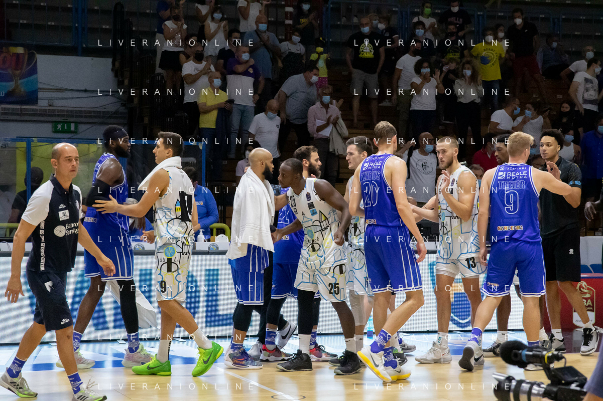 CasoniM/LMedia - Vanoli Basket Cremona VS Banco di Sardegna Sassari - Basket Supercoppa Italiana 10 settembre 2021 - Pala Radi, Cremona, Italia Nella foto: Fine partita tra Vanoli Cremona e Banco di Sardegna Sassari @CasoniM/LMedia/ AGENZIA ALDO LIVERANI SAS