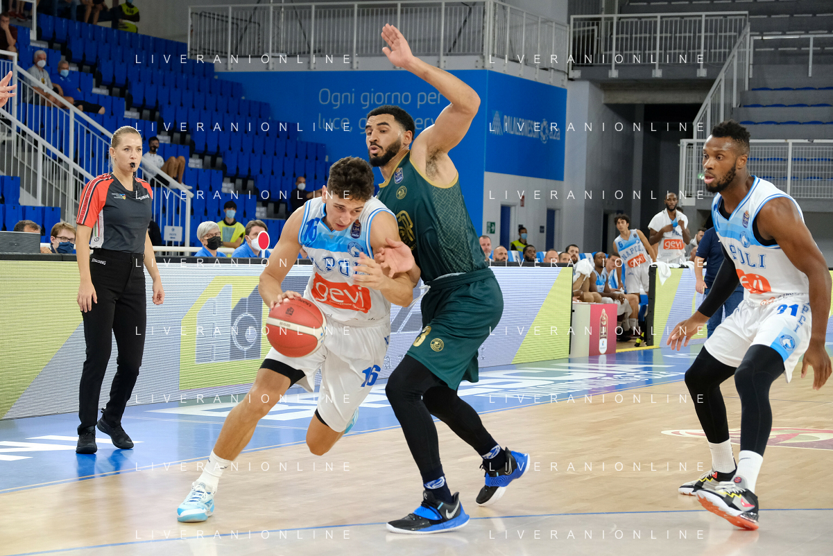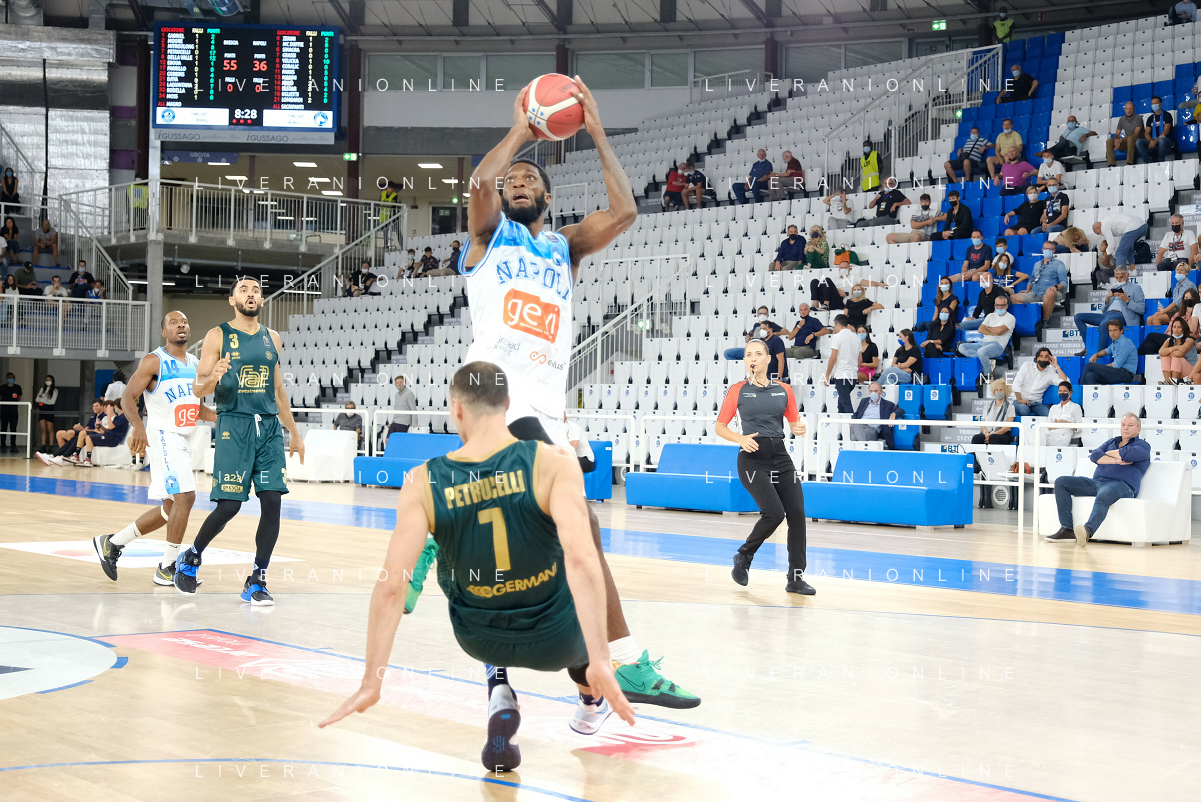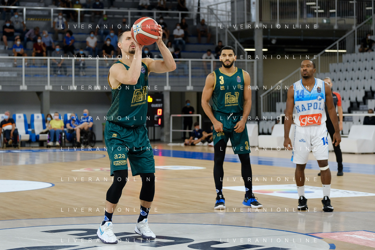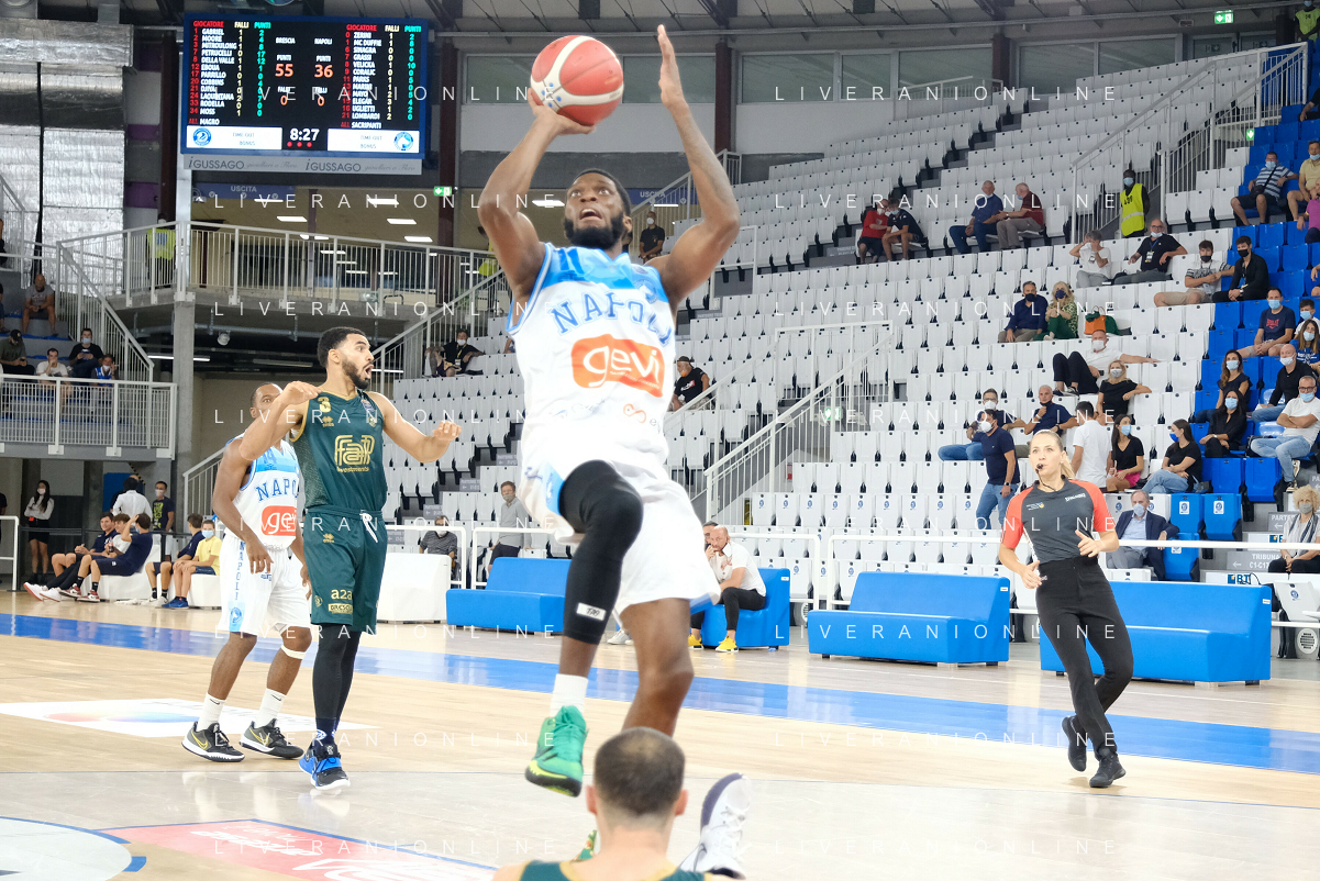 TommasiniR/LMedia - Germani Brescia VS GeVi Napoli - Basket Supercoppa Italiana 11 settembre 2021 - Pala Leonessa, Brescia, Italia Nella foto: Suspension shot for Frank Elegar - GeVi Napoli Basket @TommasiniR/LMedia AG ALDO LIVERANI SAS