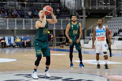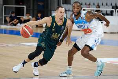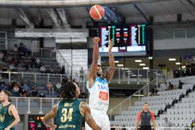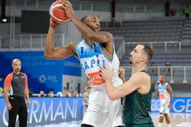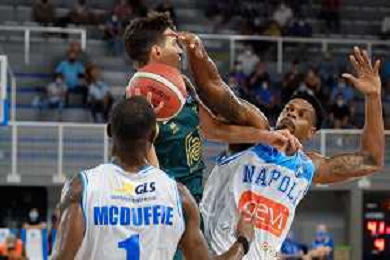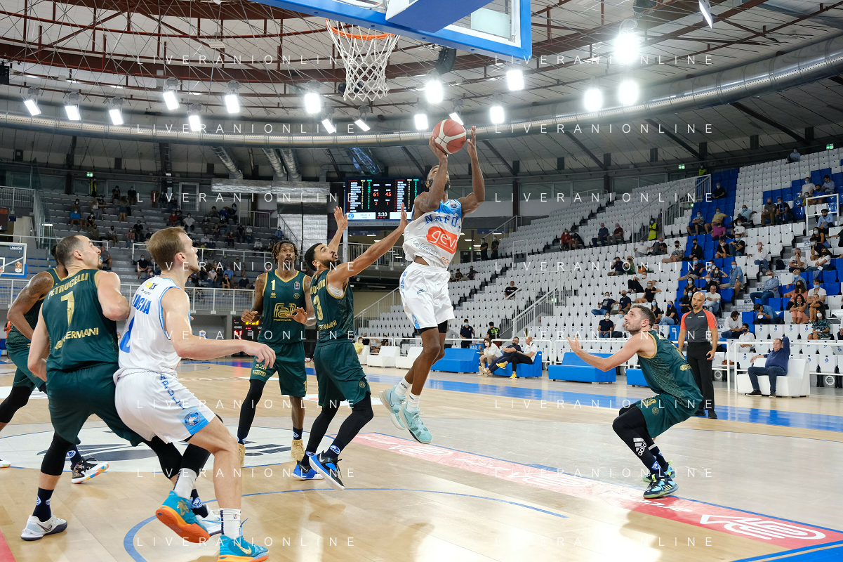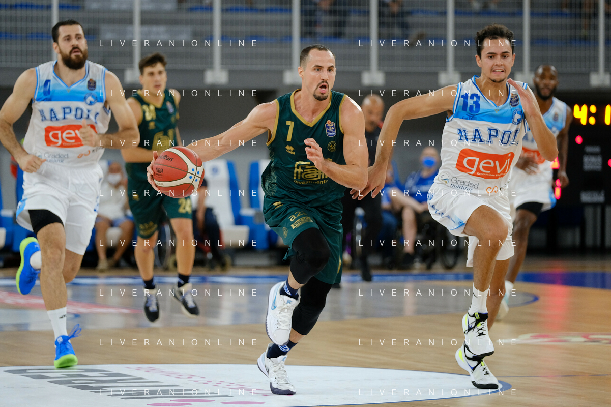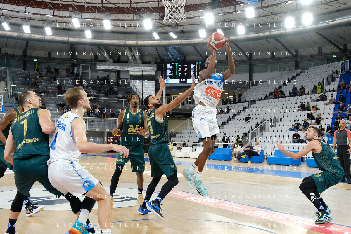 TommasiniR/LMedia - Germani Brescia VS GeVi Napoli - Basket Supercoppa Italiana 11 settembre 2021 - Pala Leonessa, Brescia, Italia Nella foto: Suspension shot for Frank Elegar - GeVi Napoli Basket @TommasiniR/LMedia AG ALDO LIVERANI SAS