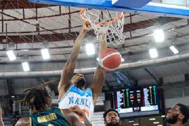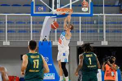 TommasiniR/LMedia - Germani Brescia VS GeVi Napoli - Basket Supercoppa Italiana 11 settembre 2021 - Pala Leonessa, Brescia, Italia Nella foto: Dunk of Frank Elegar - GeVi Napoli Basket @TommasiniR/LMedia AG ALDO LIVERANI SAS