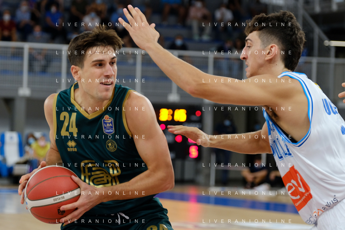 TommasiniR/LMedia - Germani Brescia VS GeVi Napoli - Basket Supercoppa Italiana 11 settembre 2021 - Pala Leonessa, Brescia, Italia Nella foto: Contrast between Tommaso Laquintana - Germani Basket Brescia ans Lorenzo Uglietti - GeVi Napoli Basket @TommasiniR/LMedia AG ALDO LIVERANI SAS