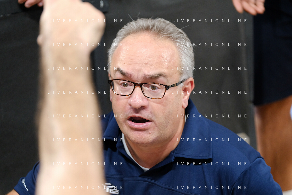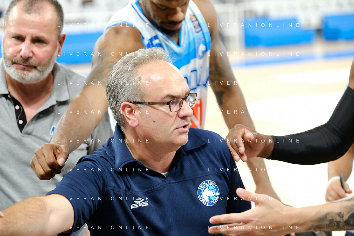TommasiniR/LMedia - Germani Brescia VS GeVi Napoli - Basket Supercoppa Italiana 11 settembre 2021 - Pala Leonessa, Brescia, Italia Nella foto: Stafano Sacripanti - Head coach of GeVi Napoli Basket during a time-out. @TommasiniR/LMedia AG ALDO LIVERANI SAS