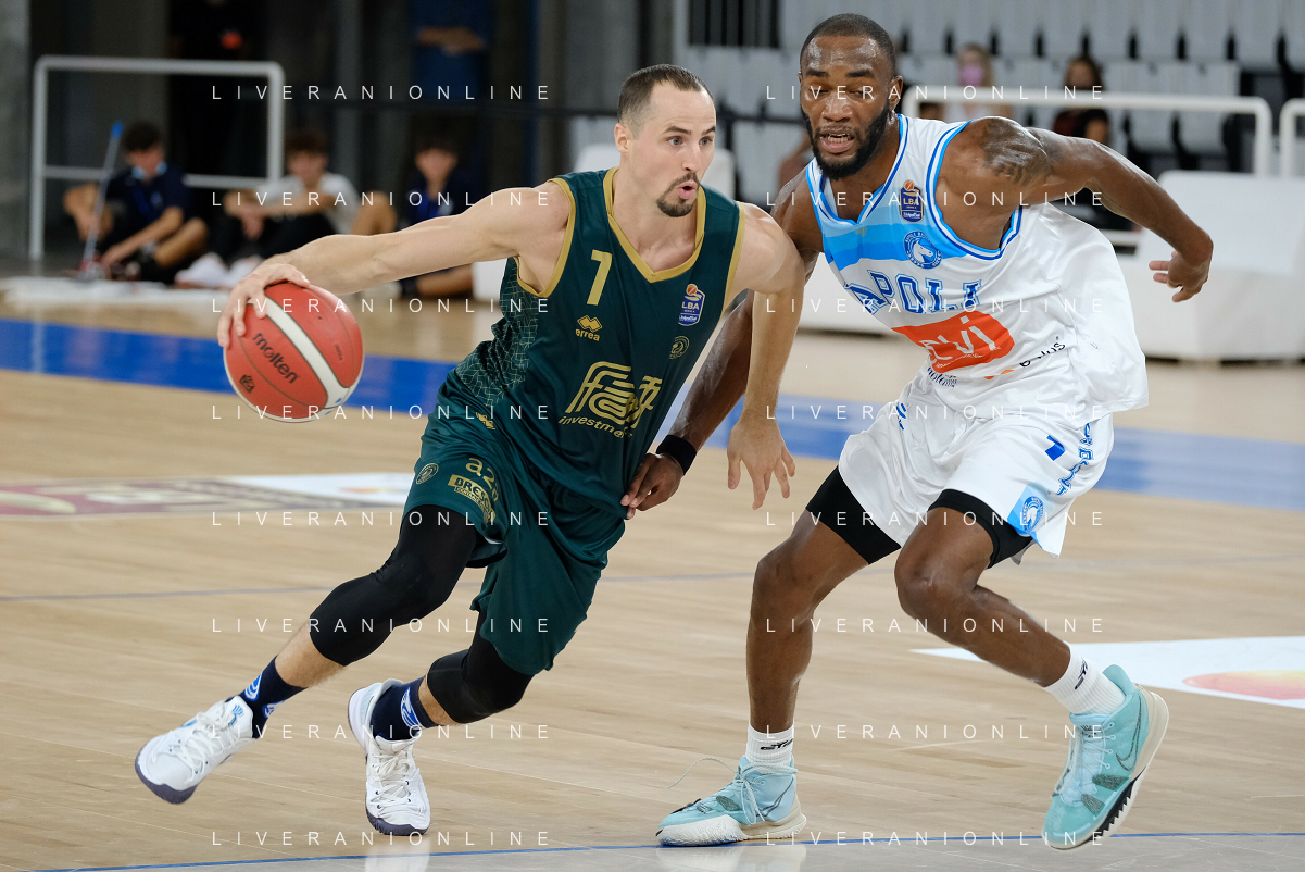 TommasiniR/LMedia - Germani Brescia VS GeVi Napoli - Basket Supercoppa Italiana 11 settembre 2021 - Pala Leonessa, Brescia, Italia Nella foto: Tommaso Laquintana - Germani Basket Brescia and Frank Elegar - GeVi Napoli Basket @TommasiniR/LMedia AG ALDO LIVERANI SAS