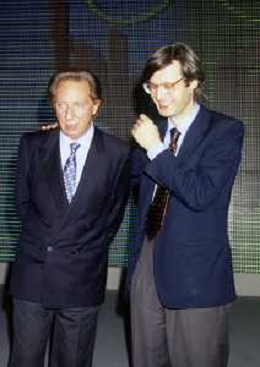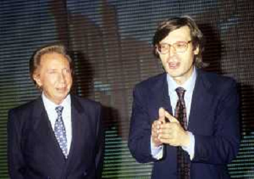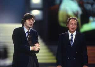 RETROSPETTIVA MIKE BONGIORNO PRESENTATORE TELEVISIVO NELLA FOTO MIKE BONGIORNO CON VITTORIO SGARBI AG ALDO LIVERANI SAS