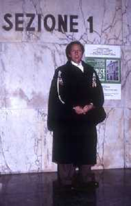 RETROSPETTIVA MIKE BONGIORNO PRESENTATORE TELEVISIVO NELLA FOTO MIKE BONGIORNO CON LA TOGA IN TRIBUNALE A MILANO AG ALDO LIVERANI SAS