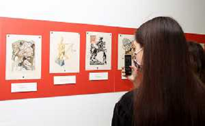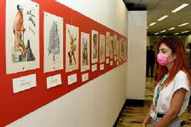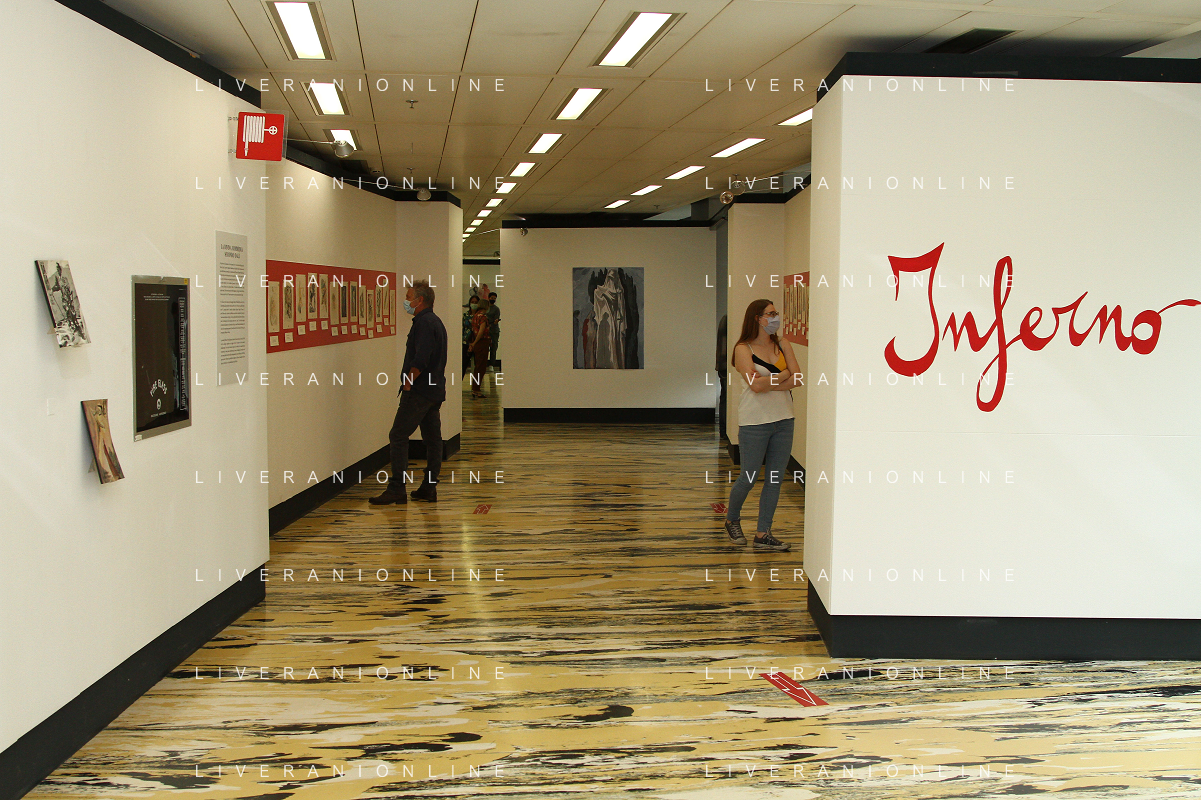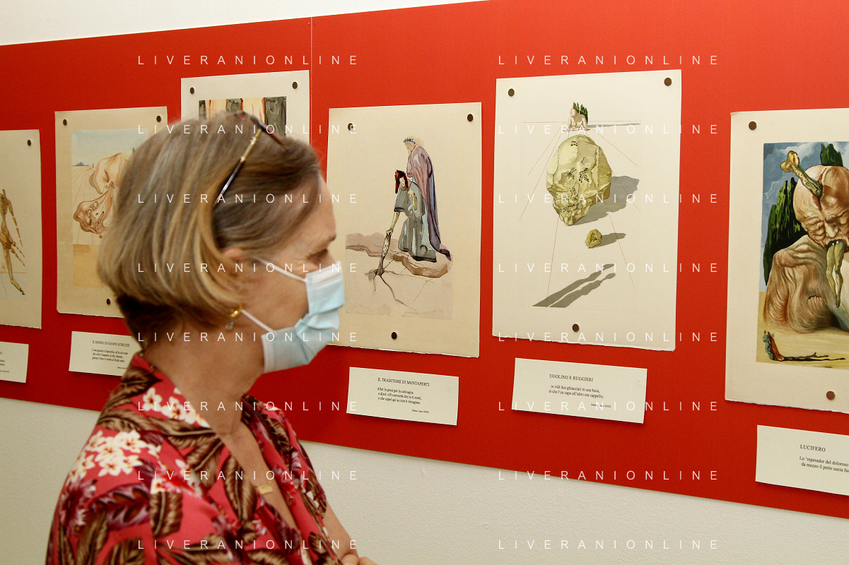 Milano ( MI ) 14/09/2021 Mostra in occasione del 700∞ anniversario dantesco: esposte a Palazzo Pirelli le 100 tavole originali con cui Salvador DalÌ ha illustrato la Divina Commedia Nella foto: Persone mentre guardano le tavole che riguarda la Divina Commedia di Dante PH Lauro Montagnini / AGENZIA ALDO LIVERANI SAS