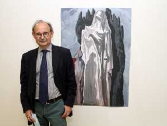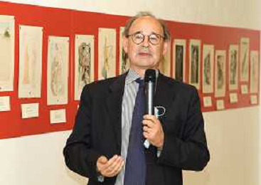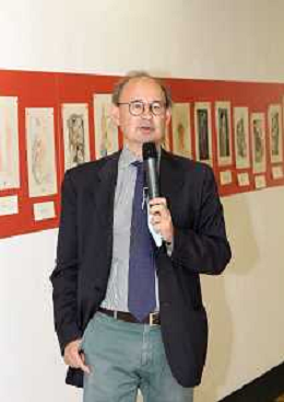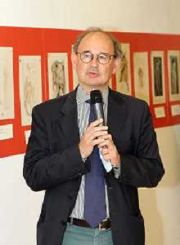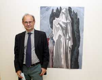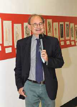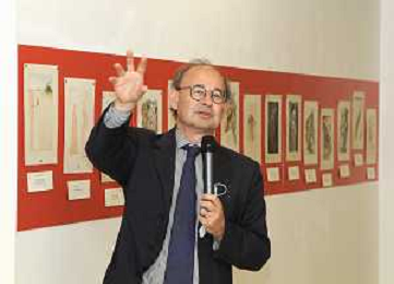 Milano ( MI ) 14/09/2021 Mostra in occasione del 700∞ anniversario dantesco: esposte a Palazzo Pirelli le 100 tavole originali con cui Salvador DalÌ ha illustrato la Divina Commedia Nella foto: Andrea Kerbaker, Curatore della mostra e alle sue spalle L'Inferno di Dante PH Lauro Montagnini / AGENZIA ALDO LIVERANI SAS