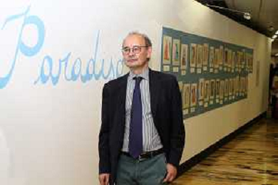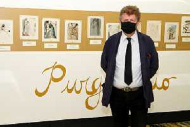 Milano ( MI ) 14/09/2021 Mostra in occasione del 700∞ anniversario dantesco: esposte a Palazzo Pirelli le 100 tavole originali con cui Salvador DalÌ ha illustrato la Divina Commedia Nella foto: Andrea Kerbaker, Curatore della mostra e alle sue spalle il Paradiso di Dante PH Lauro Montagnini / AGENZIA ALDO LIVERANI SAS