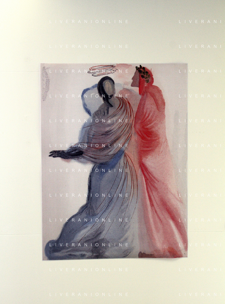 Milano ( MI ) 14/09/2021 Mostra in occasione del 700∞ anniversario dantesco: esposte a Palazzo Pirelli le 100 tavole originali con cui Salvador DalÌ ha illustrato la Divina Commedia Nella foto: Tavola che Dante e beatrice in Purgatorio PH Lauro Montagnini / AGENZIA ALDO LIVERANI SAS
