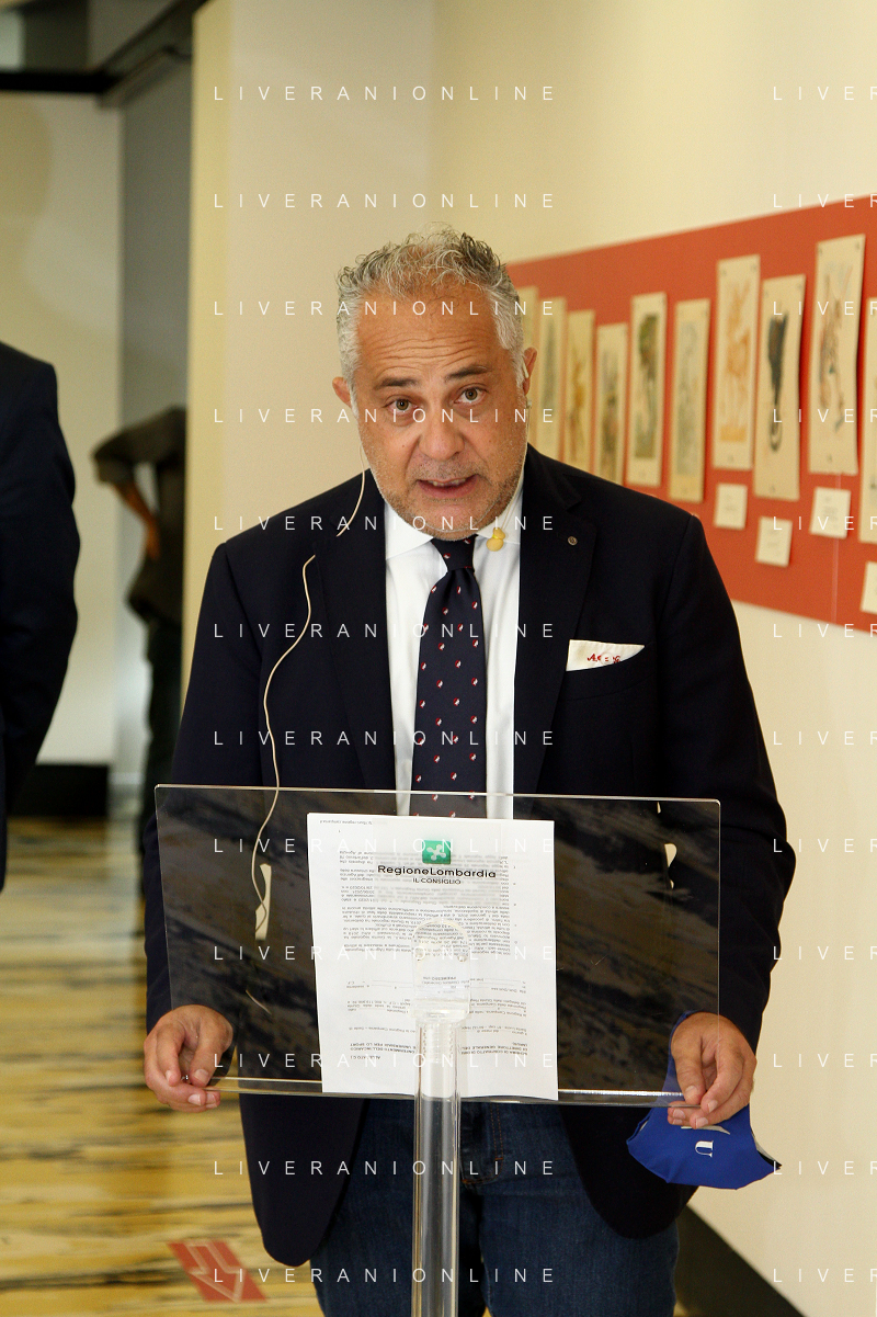Milano ( MI ) 14/09/2021 Mostra in occasione del 700∞ anniversario dantesco: esposte a Palazzo Pirelli le 100 tavole originali con cui Salvador DalÌ ha illustrato la Divina Commedia Nella foto: Alessandro Fermi (Presidente Consiglio Regionale) PH Lauro Montagnini / AGENZIA ALDO LIVERANI SAS