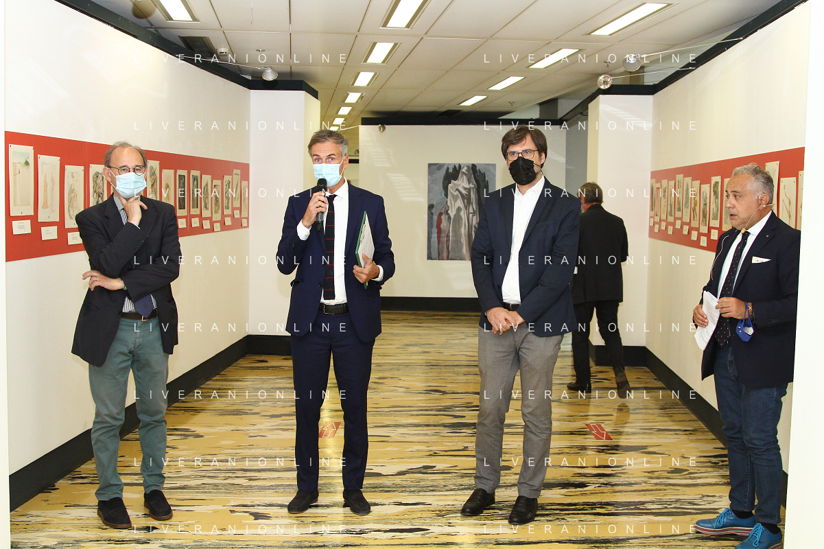 Milano ( MI ) 14/09/2021 Mostra in occasione del 700∞ anniversario dantesco: esposte a Palazzo Pirelli le 100 tavole originali con cui Salvador DalÌ ha illustrato la Divina Commedia Nella foto: Andrea Kerbaker, Alessandro Fermi, Borghetti e Antonello Grimaldi PH Lauro Montagnini / AGENZIA ALDO LIVERANI SAS